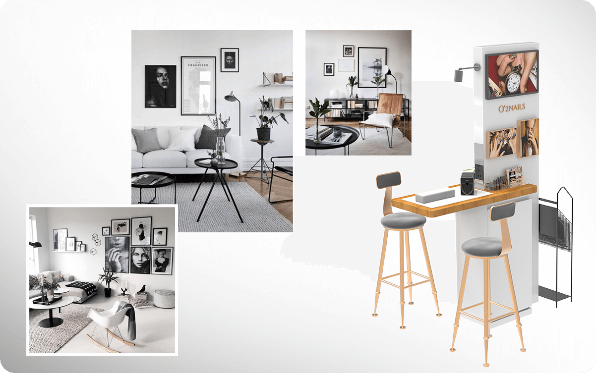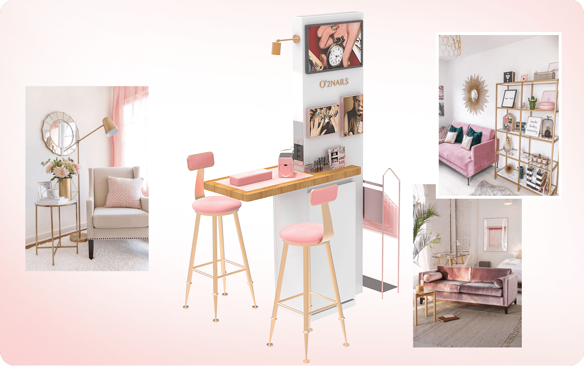 This is an intelligent nail art workstation integrating display, publicity, storage and nail art services, which occupies a small space but has complete function and contracted but not simple.